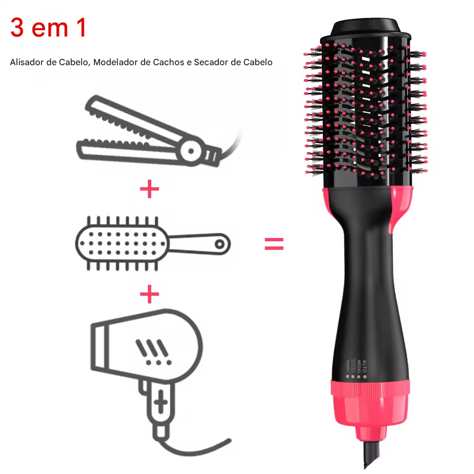A Escova Secadora 3 em 1 é perfeita para quem quer cabelos lisos, modelados e brilhantes em minutos, com total praticidade e segurança.