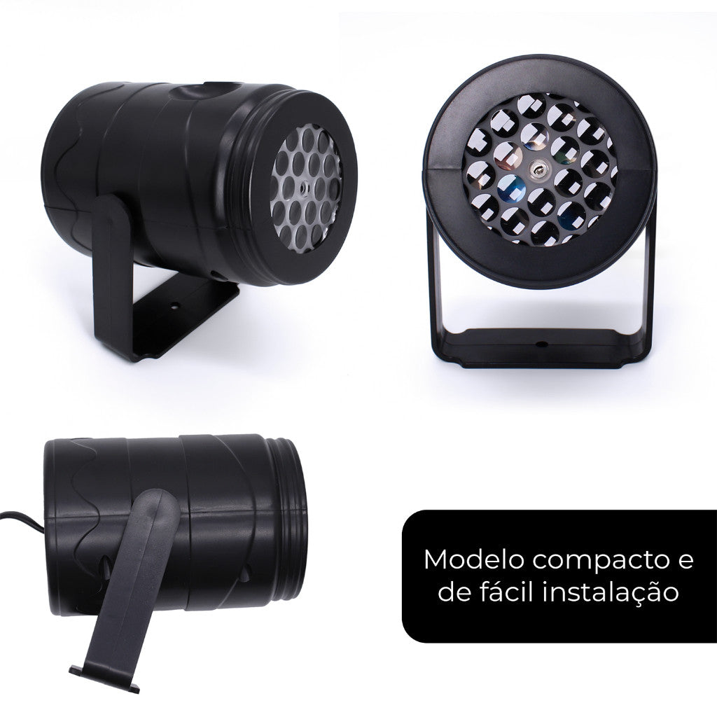 Projeção de até 5 metros, perfeita para casas, festas e eventos